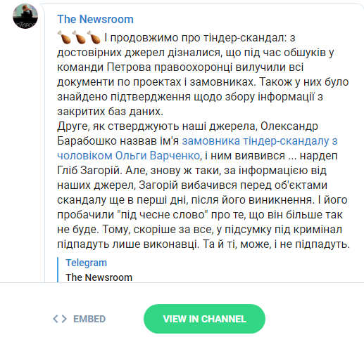 Отметим, что по одной из версий секс-скандал вокруг мужа заместителя главы ГБР Ольги Варченко связан с ее противостоянием с главой ГБР Романом Трубой. Последнего же называют человеком, близким к Глебу Загорию и генпрокурору Юрию Луценко.