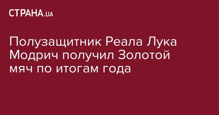 Атакующий полузащитник мадридского "Реала" и лидер сборной Хорватии Лука Модрич стал обладателем престижного "Золотого мяча", вручаемого по опросу журналистов и футбольных специалистов лучшему игроку континента по итогам года.