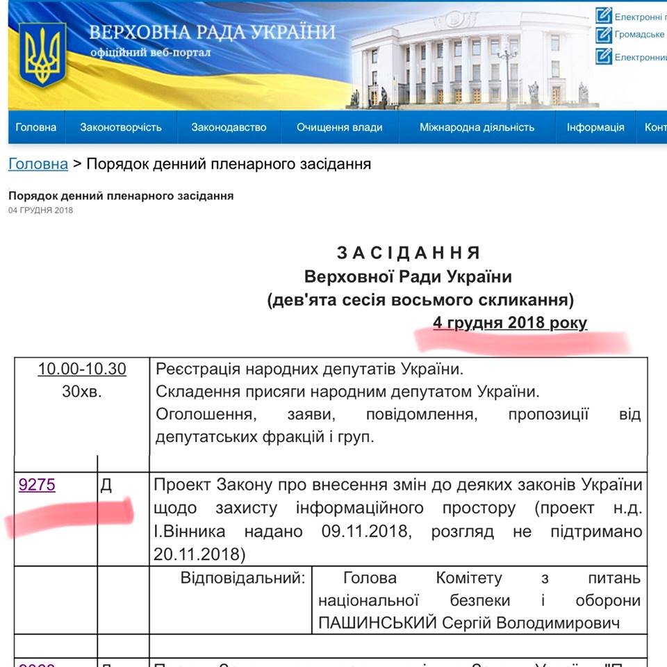Сегодня, 4 декабря, в Верховной Раде будут приняты попытки внести в повестку дня законопроект №9275, который "освящает" применение Закона "О санкциях" в отношении украинских телеканалов.
