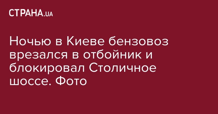 В Киеве, 4 декабря, на путепроводе Столичного шоссе, возле населенного пункта Корчеватое произошло ДТП с участием бензовоза Volvo, который врезался в отбойник. Авария случилась около 00:35, сообщает "Информатор".