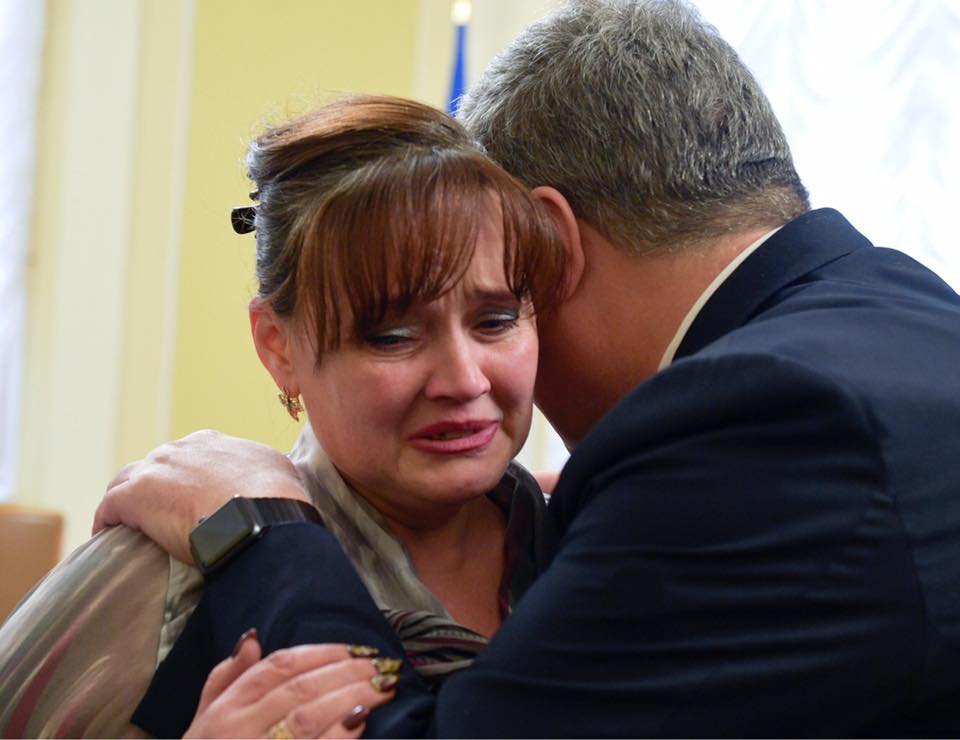 На снимках, выложенных в аккаунте президента в Facebook видно, что родственники захваченных моряков провели встречу в слезах. Фото: facebook.com/petroporoshenko