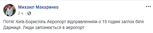 Об этом сообщил на своей странице в Facebook очевидец инцидента Михаил Макаренко. "Поезд "Киев-Борисполь Аэропорт" отправлением в 15 часов заглох возле станции Дарница. Люди опаздывают в аэропорт", - написал он.