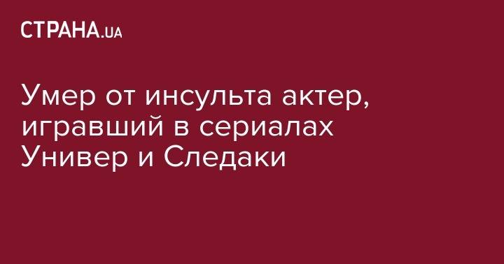 Умер от инсульта актер, игравший в сериалах Универ и Следаки
