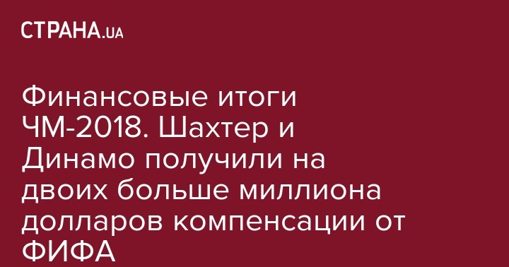Финансовые итоги ЧМ-2018. Шахтер и Динамо получили на двоих больше миллиона долларов компенсации от ФИФА