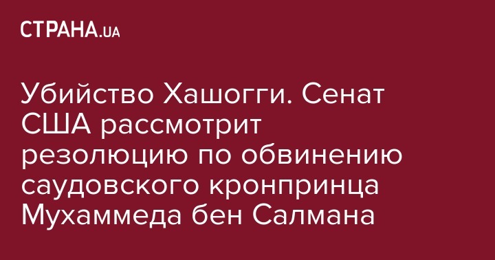 Сенат США рассмотрит проект резолюции с требованиями наказать наследного принца Саудовской Аравии Мухаммеда бен Салмана за соучастие в убийстве оппозиционного журналиста Джамаля Хашогги. Об этом передает Интерфакс.