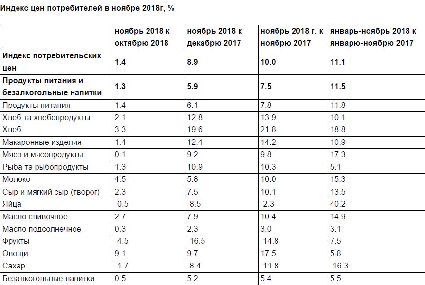 В то  же время, рост потребительских цен в Украине в ноябре 2018 года замедлился до 1,4% с 1,7% в октябре и 1,9% – в ноябре и с начала года достиг 8,9%. Базовая инфляция в ноябре-2018 также снизилась до 1,1% с 1,3% в октябре и 1,9% в сентябре, по итогам 11 месяцев достигла 8,1%.