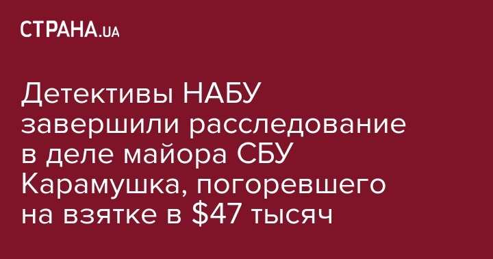 Детективы НАБУ завершили расследование в деле майора СБУ Карамушка, погоревшего на взятке в $47 тысяч