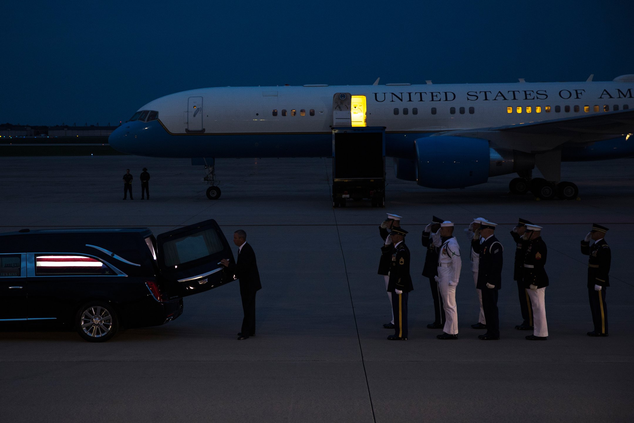 Гроб сенатора Джона Маккейна прибывает на совместную базу Эндрюс в штате Мэриленд в августе. 30. Маккейн умер пятью днями ранее. Фото: time.com