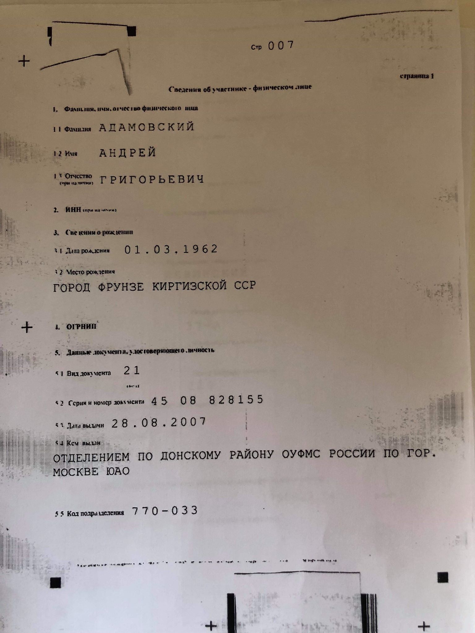 Как удалось выяснить "Стране", российский паспорт Андрей Адамовский получил еще в 2007 году.