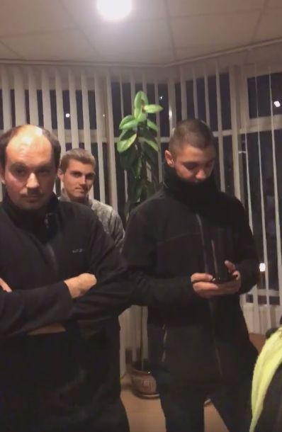 Охрана заблокировала радикалов, а доктора по их словам, вызвали полицию. Тем временем на подмогу своим приехала группа поддержки националистов - которых впрочем дальше дверей так и не пропустили. Потом полиция увезла задержанных, и радикалы поехали "отбивать" их у полиции.