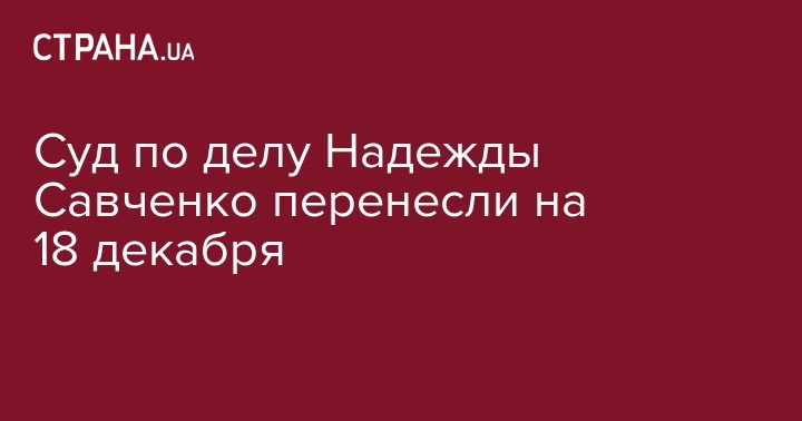 Суд по делу Надежды Савченко перенесли на 18 декабря