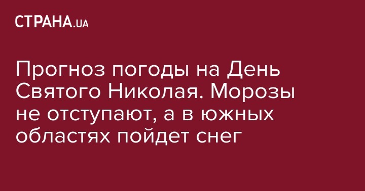 Прогноз погоды на День Святого Николая. Морозы не отступают, а в южных областях пойдет снег