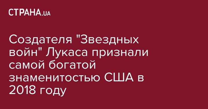 Создателя "Звездных войн" Лукаса признали самой богатой знаменитостью США в 2018 году