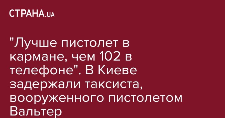 "Лучше пистолет в кармане, чем 102 в телефоне". В Киеве задержали таксиста, вооруженного пистолетом Вальтер