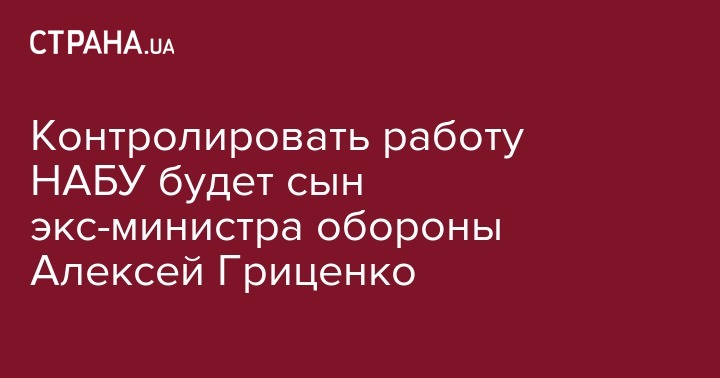 Контролировать работу НАБУ будет сын экс-министра обороны Алексей Гриценко
