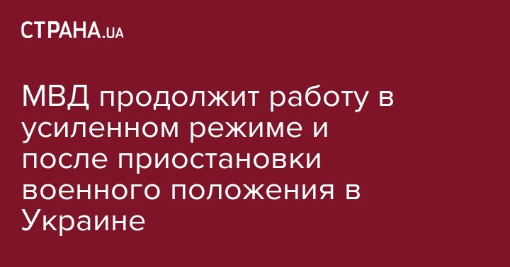 Действие правового режима военного положения приостановлено в 10 областях Украины, однако все органы системы Министерства внутренних дел продолжают нести службу в усиленном варианте, сообщается на странице МВД Украины в соцсети Facebook со ссылкой на первого заместителя министра внутренних дел Сергея Ярового.