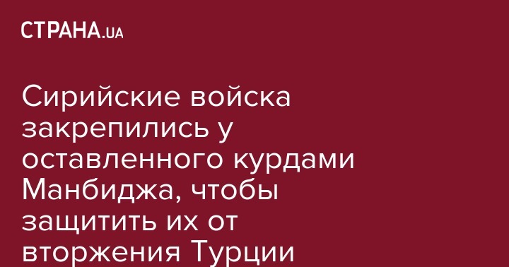 "Армия и Вооруженные силы на национальном уровне несут ответственность за государственную целостность каждой пяди территории Сирийской Арабкой Республики. В ответ на призыв населения Менбиджа, Главное командовании армии и вооруженных сил объявляет о вводе подразделений Сирийской Арабской Армии в Менбидж и поднятии сирийского флага над городом", - говорится в заявлении Генштаба армии Сирии, которое цитирует Телеграм-канал "Рыбарь". Также ввод сирийской армии в Манбидж подтверждает Аль-Джазира.