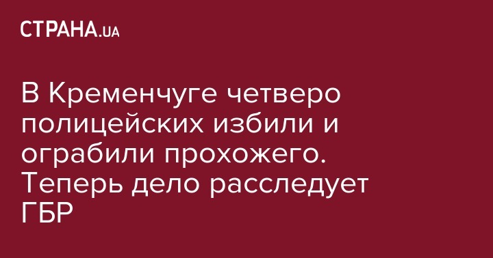 Пьяные полицейские вечером 27 декабря вчетвером напали на прохожего, избили его и ограбили. Всех нападавших задержали сегодня. В Полтавской области задержаны четыре сотрудника патрульной полиции, которых подозревают в совершении разбойного нападения на прохожего. Об этом в субботу, 29 декабря, сообщает пресс-служба ГБР.