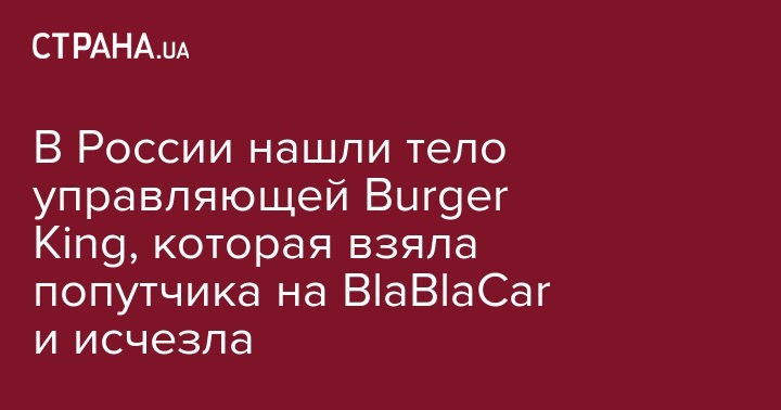 Следователи обнаружили тело директора двух московских ресторанов Burger King Ирины Ахматовой, которая взяла попутчика через сервис BlaBlaCar и исчезла. Об этом сообщает ТАСС.