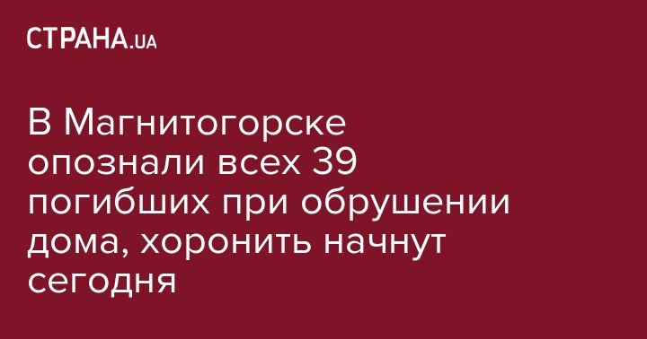 В Магнитогорске опознали всех 39 погибших при обрушении дома, хоронить начнут сегодня