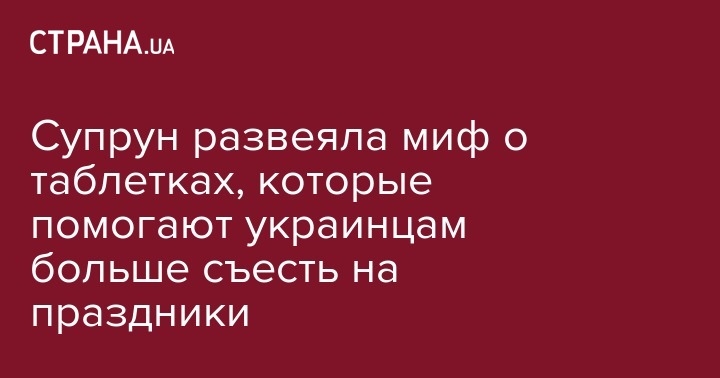 Глава Минздрава Ульяна Супрун рассказала о специализированных таблетках, которые лучше не пить перед застольем с целью облегчить последствия возможного переедания. На самом деле лекарства не смогут ничем помочь. Об этом она написала на своей странице в Facebook.