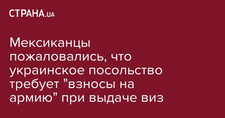 Один из них, адвокат Карлос Эдуардо Сото Тревино заявил, что в украинском посольстве в Мексике консул перед решением визовых вопросов якобы требует сдать деньги на нужды украинской армии. "Трижды, когда я обращался за визой, когда процесс начинался, они показывали такое письмо, и просили вас написать аналогичное, где говорится о том, что вы делаете благотворительный взнос в размере 80-100 долларов в руки консулу или кому-то другому в посольстве, и тогда вы получите визу. Конечно, за саму визу платить надо отдельно", - сказал он.