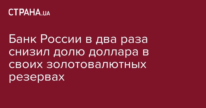 Доля доллара США в российских золотовалютных резервах по состоянию на конец июня 2018 года упала до исторического минимума в 21,9% по сравнению с 43,7% в конце марта. Это следует из ежеквартального "Обзора деятельности Банка России по управлению активами в иностранных валютах и золоте", обнародованного в среду, 9 января, пишет DW. Одновременно регулятор РФ нарастил долю евро до 32% и китайских юаней до 14,7%.