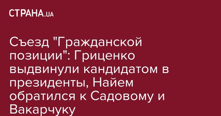 Съезд "Гражданской позиции": Гриценко выдвинули кандидатом в президенты, Найем обратился к Садовому и Вакарчуку