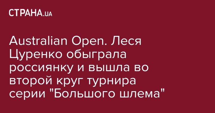 "Леся Цуренко открыла Австралию победой. Леся Цуренко первой из представителей Украины пошла в бой в основе Открытого чемпионата Австралии. Вторым запуском на корте № 19 она встретилась с 24-летней россиянкой Екатериной Александровой, которая живет и тренируется в Праге. Стартовый матч получился довольно непростым. Продолжался он более полутора часов, и главное, что завершился победой нашей соотечественницы - 6:4; 7:6 (7: 4)", - рассказали в Федерации.