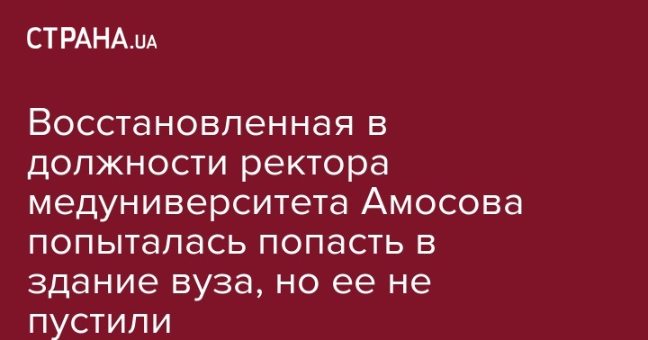 В понедельник, 14 января, ректор Национального медицинского университета им. Богомольца Екатерина Амосова, которую в конце декабря суд восстановил в должности руководителя, пришла со своими сторонниками в вуз и предприняла попытку попасть в здание. Об этом на своей странице в Twitter написала и.о. министра здравоохранения Ульяна Супрун.