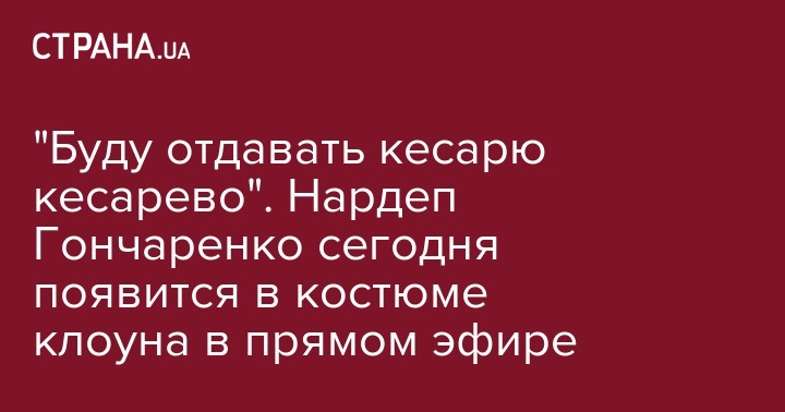 "Буду отдавать кесарю кесарево". Нардеп Гончаренко сегодня появится в костюме клоуна в прямом эфире