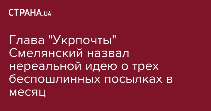 Глава "Укрпочты" Смелянский назвал нереальной идею о трех беспошлинных посылках в месяц
