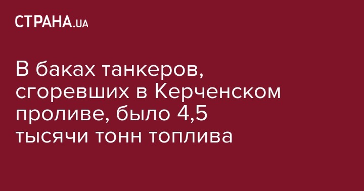Более 4,5 тысяч тонн топлива в общей сложности было к началу пожара на двух судах, сгоревших в итоге в Черном море. Об этом сообщает ТАСС со ссылкой на пресс-службу Росморречфлота.