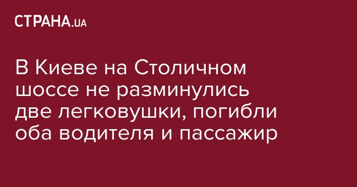 В Киеве на Столичном шоссе не разминулись две легковушки, погибли оба водителя и пассажир