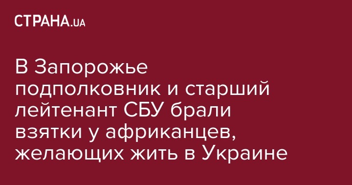 В Запорожье подполковник и старший лейтенант СБУ брали взятки у африканцев, желающих жить в Украине