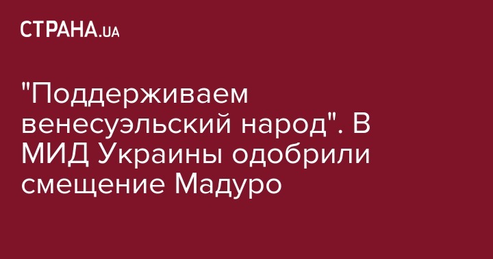 Украинские власти поддерживают деятельность венесуэльской Национальной ассамблеи и смещение Николаса Мадуро с должности президента Венесуэлы. Об этом со ссылкой на заявление МИД Украины пишет "Украинская правда"