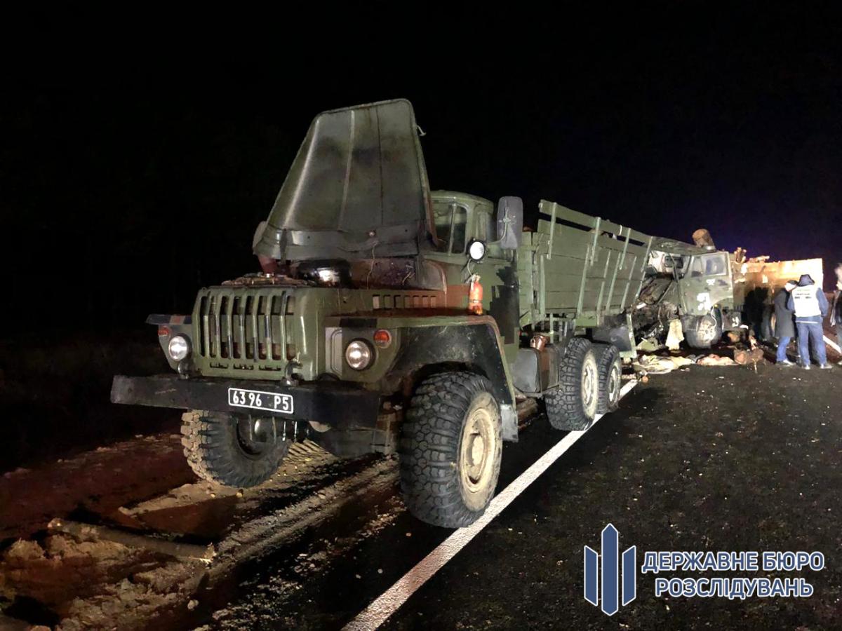 Оба грузовых автомобиля принадлежат воинской части, которая дислоцируется в городе Кривой Рог. ГБР расследует уголовное производство, открытое по части 1 статьи 415 Уголовного кодекса Украины (нарушение правил вождения или эксплуатации боевой, специальной или транспортной машины, что повлекло пострадавшему средней тяжести или тяжелые телесные повреждения или гибель потерпевшего).