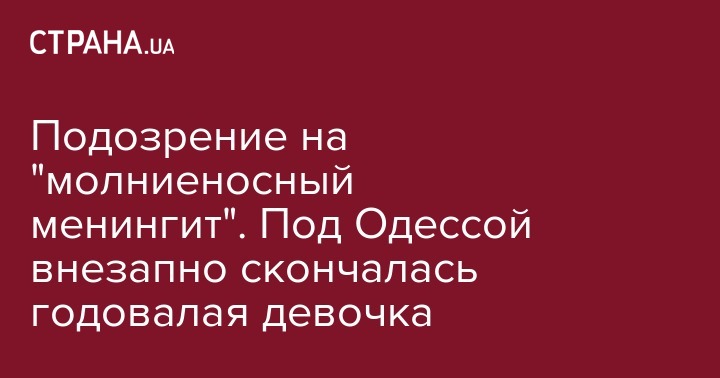 В Килийском районе Одесской области внезапно умерла годовалая девочка. Причина смерти пока неизвестна, однако ее старшего брата госпитализировали с подозрением на менингококковую инфекцию молниеносной формы. Об этом сообщает "Бессарабия INFORM".