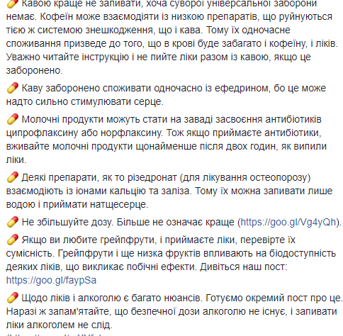 Молочные продукты могут помешать усвоению антибиотиков ципрофлаксина и норфлаксина, поэтому Супрун посоветовала употреблять молочные продукты не менее чем через два часа после приема лекарств.