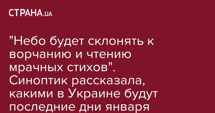 "Небо будет склонять к ворчанию и чтению мрачных стихов". Синоптик рассказала, какими в Украине будут последние дни января