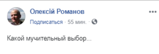 Например, пользователь Алексей Романов подписал слоган много значительным: "Какой мучительный выбор"