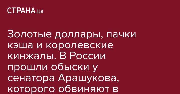 На кадрах можно увидеть дорогое холодное оружие, золотые слитки и разложенные на столе при обыске деньги. Также на видео попал интерьер дома Арашукова.