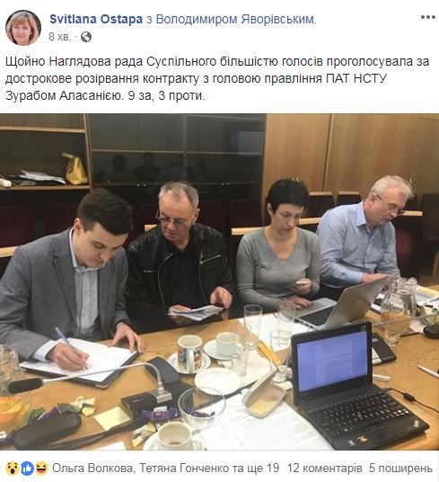 Об этом сообщила член Набсовета Светлана Остапа на своей странице в Facebook.