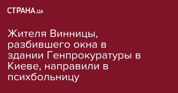 Жителя Винницы, разбившего окна в здании Генпрокуратуры в Киеве, направили в психбольницу