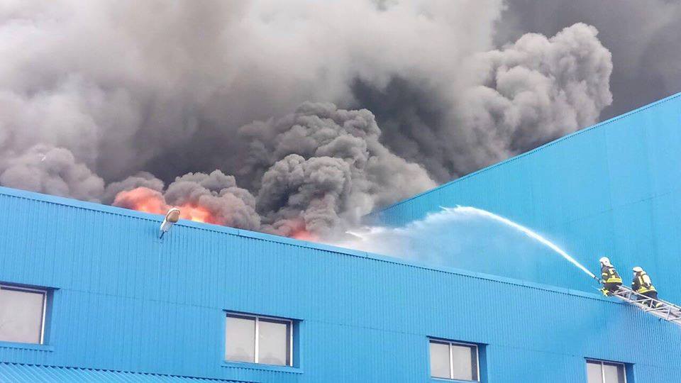 Площадь пожара увеличилась до 8 тысяч метров. Спасатели три часа тушат горящий склад на Лесном в Киеве. Фото