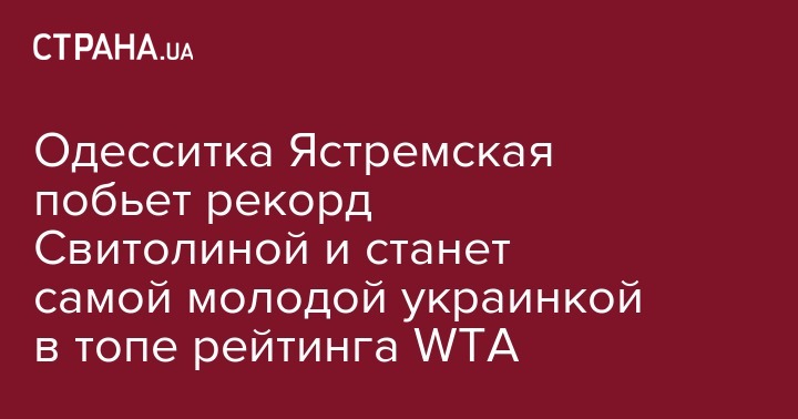Таким образом, Ястремская побьет рекорд Элины Свитолиной, ставшей 40-й ракеткой мира в возрасте 19 лет и 4 дней (6 сентября 2013). Завтра Ястремская займет 34-е место в рейтинге WTA.