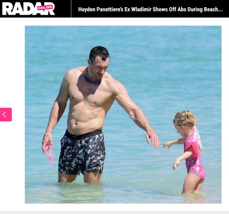 Папарацци сняли, как 42-летний украинский боксер Владимир Кличко играет с 4-летней девочкой на пляже Барбадоса, вместе с папой и розовыми очками для плавания она смело учится нырять в Карибском море. Отметим, что в феврале прошлого года Кличко также отдыхал на Барбадосе, тогда они были вместе с Панеттьери. Отметим, что спортсмен является прямо-таки фанатом этого экзотического острова. В 2018 году он изобрел удобный способ транспортировки дочери Кайи-Евдокии, замотанной в полотенце вместо люльки.