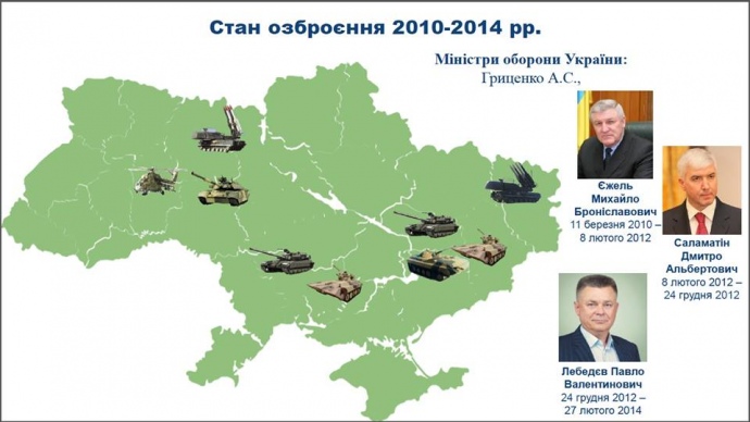 По мнению Луценко, именно с 2005 года, когда министром был Гриценко, началась самая большая "распродажа" военной техники украинской армии. Он напомнил, что в Украине уже есть три объявленные подозрения бывшим министрам обороны.