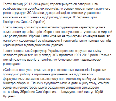 Луценко объяснил, что за период руководства Януковича, Украину разделили на 3 автономные военные зоны, что ухудшило подчиненность и коммуникацию в ВСУ.