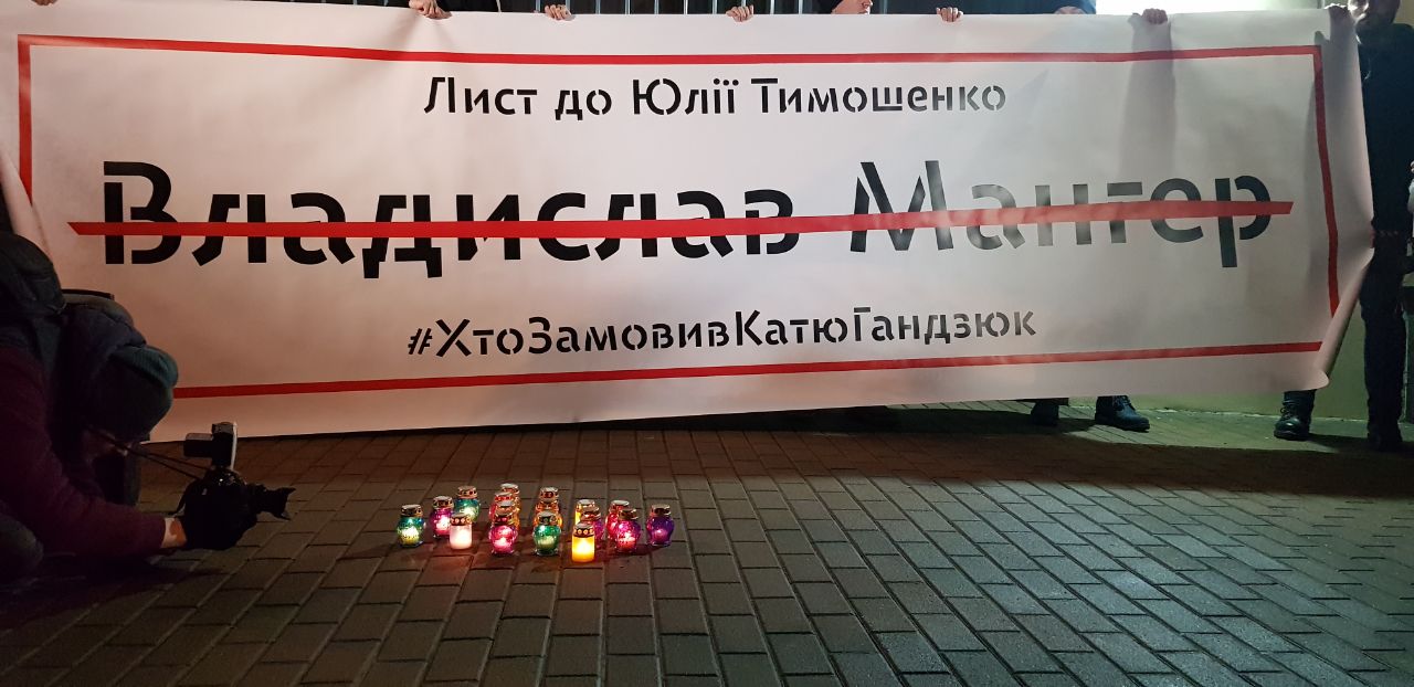 После получаса после начала митинга участникам акции "Кто заказал Катю Гандзюк" объявили, что Мангер исключен из партии БЮТ. Это сделал представитель Батькивщины, который знал Гандзюк - Иван Крулько.